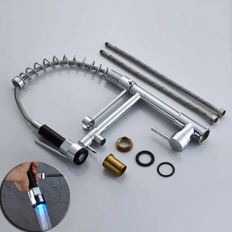 The dual spout feature, along with the pull-down sprayer with LED light head made of plastic material, adds a touch of modernity and functionality to this faucet. Whether you're washing dishes or filling up pots, this faucet offers the perfect solution for all your kitchen tasks.