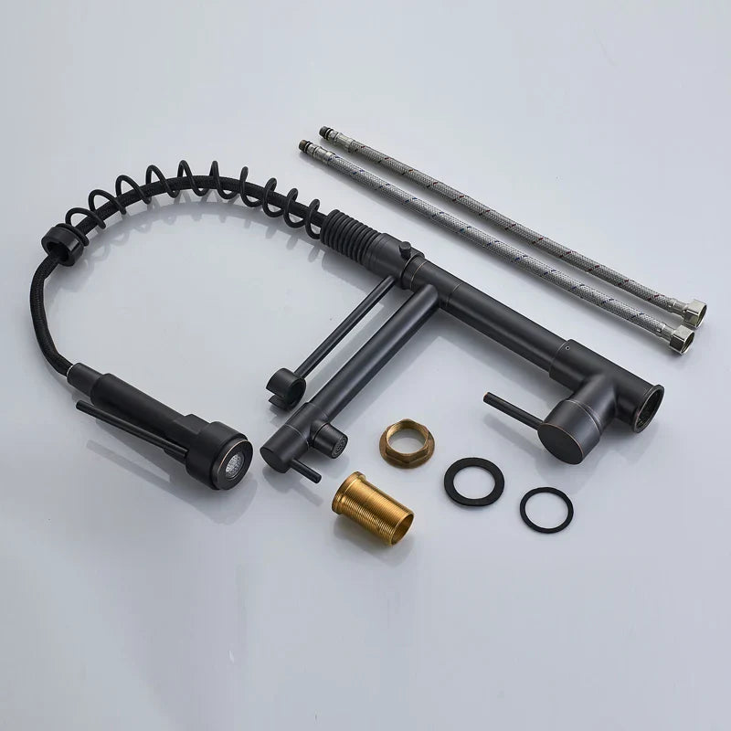 DecorBites™ Black Bronze Dual Spout Kitchen Faucet with Pull Down Sprayer
