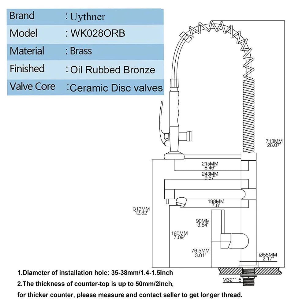 With a single handle design and 360-degree rotation, this faucet offers convenience and ease of use. The dual spout feature allows you to switch between stream mode and sprayer mode effortlessly. The high-pressure pull-out sprayer shower provides added versatility for all your kitchen tasks.