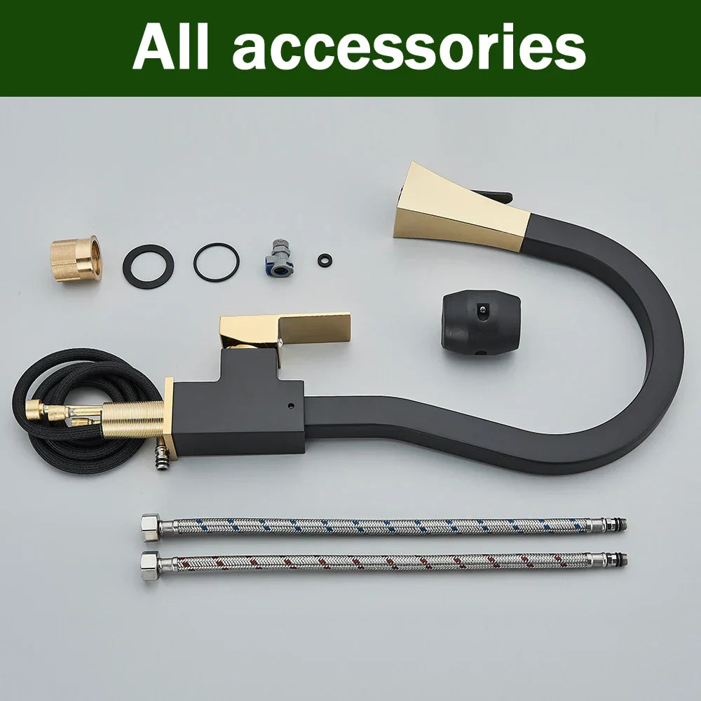 Backed by a 2-year warranty, the Decorbites Black Gold Kitchen Faucet is a reliable and stylish choice for your kitchen upgrade. Elevate your cooking space with this premium faucet that combines exquisite design with practical functionality. Upgrade to the Decorbites Black Gold Kitchen Faucet