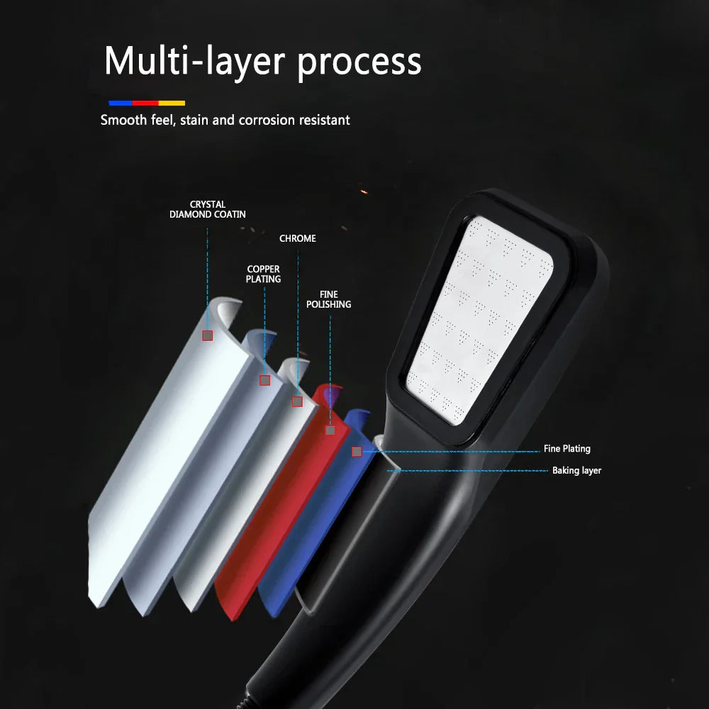 Enhance your shower experience with the Decorbites Black High Pressure Rainfall Shower Head with Bracket and Water Saving Nozzle.