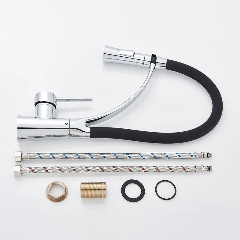 Experience the seamless blend of form and function with the Decorbites Black Hose Kitchen Faucet. The sleek and modern design adds a touch of elegance to your kitchen decor, while the high-quality brass construction ensures durability and longevity. The polished surface finishing exudes sophistication and complements any kitchen aesthetic.
