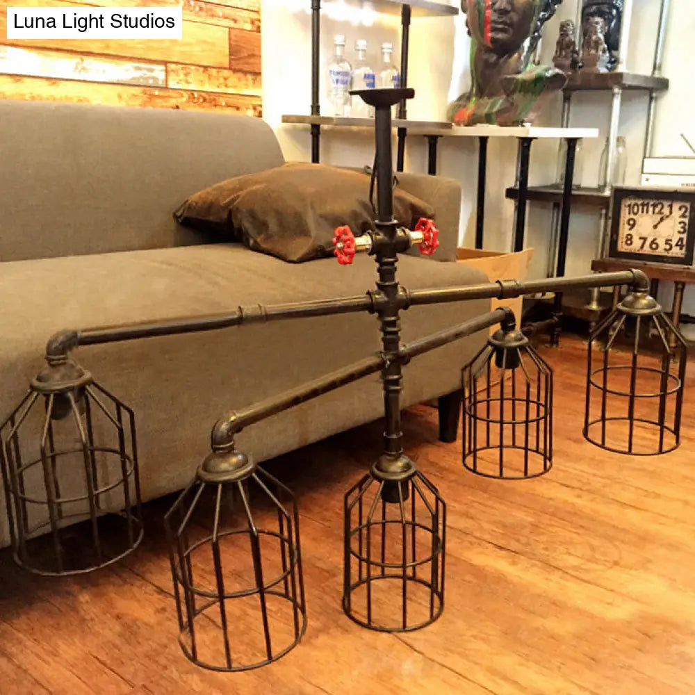DecorBites™ Black Industrial Iron Semi Flush Mount Ceiling Light with Metallic Wire Cage & Water Pipe, 1 Light for Living Room