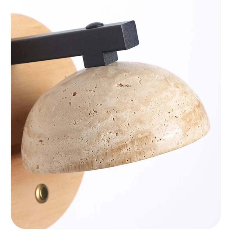 Illuminate your kitchen, dining room, bedroom, foyer, study, or bathroom with this exquisite wall lamp. The lamp features a unique yellow travertine lampshade and an iron base, creating a warm and inviting glow in your living space.