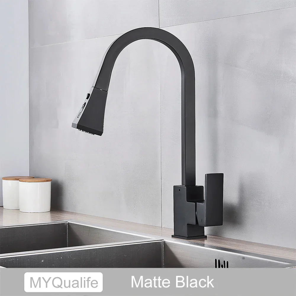DecorBites™ Black Kitchen Faucet Pull Out Mixer Square Single Handle Deck Mounted Tap