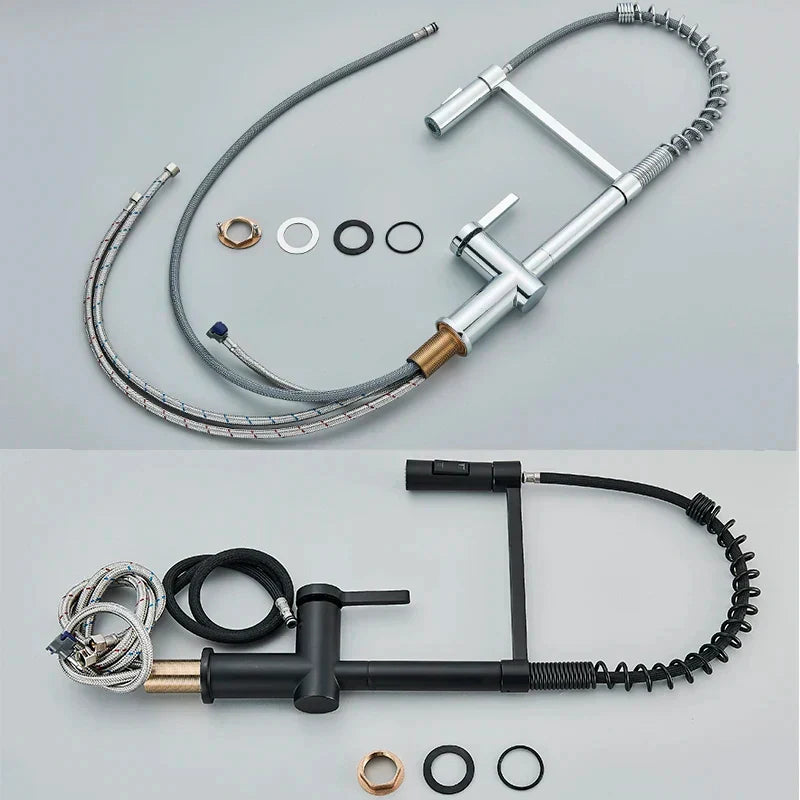 The Decorbites Black Kitchen Faucet features a single handle for easy temperature and flow control, making it a practical choice for any busy kitchen. The ceramic valve core ensures a drip-free performance, while the pull-out spray type enhances versatility.