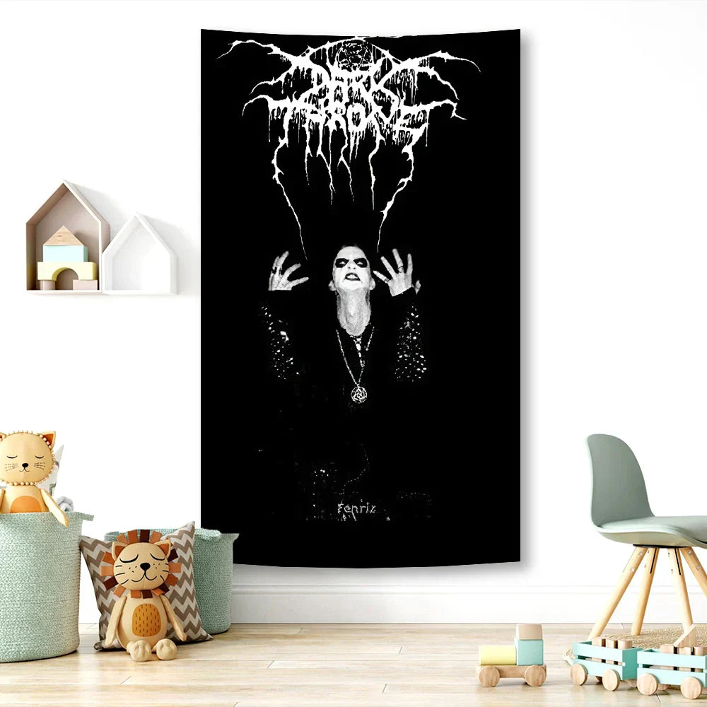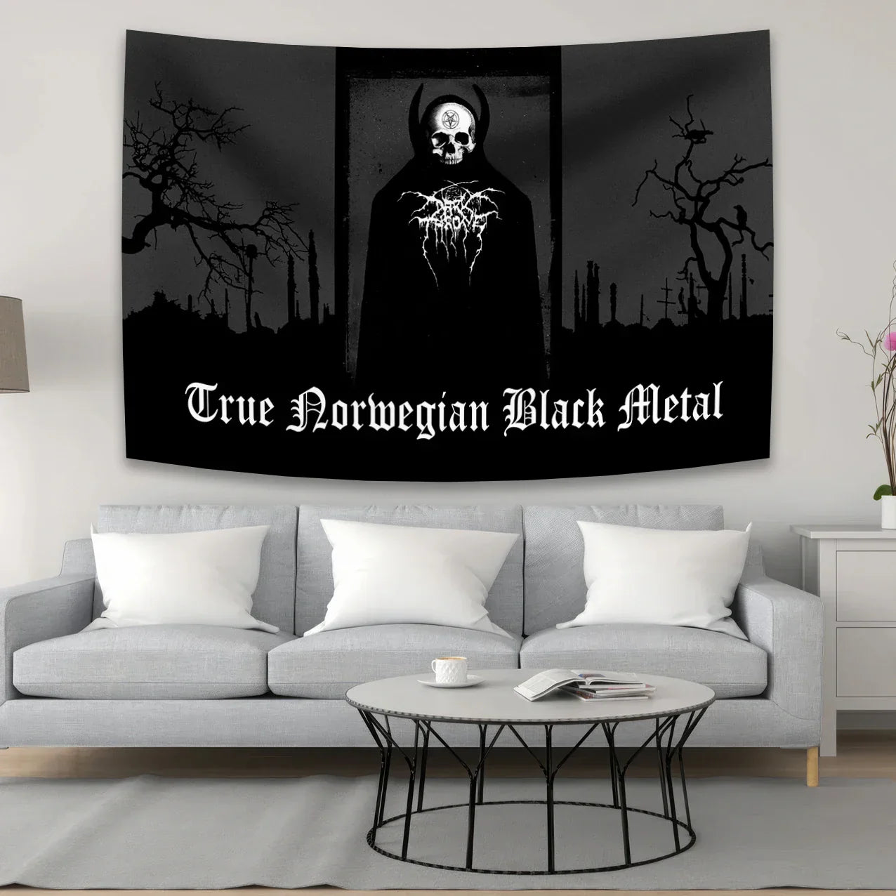 DecorBites™ Black Metal Hippie Hotel Tapestry Flag for Bohemian Bedroom Art