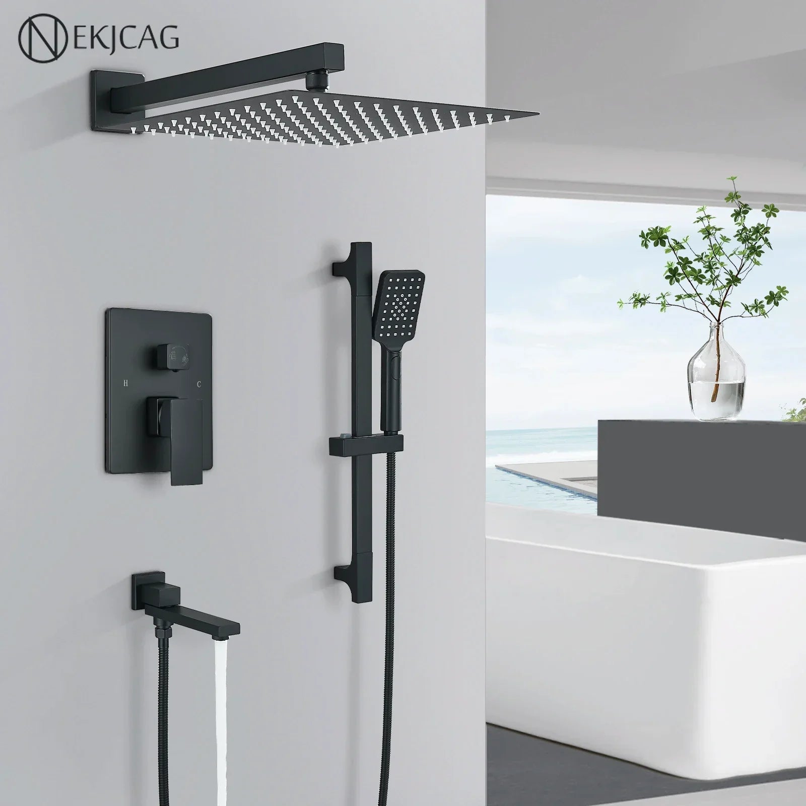 Transform your shower experience with the Decorbites Black Rainfall Shower Faucets with Slider Bar and Embedded Mixer. Crafted with precision and quality in mind, this shower set offers a luxurious upgrade to any bathroom.
