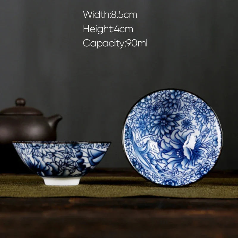 DecorBites™ Blue and White Porcelain Hand-Painted Tea Cups - Set of 1