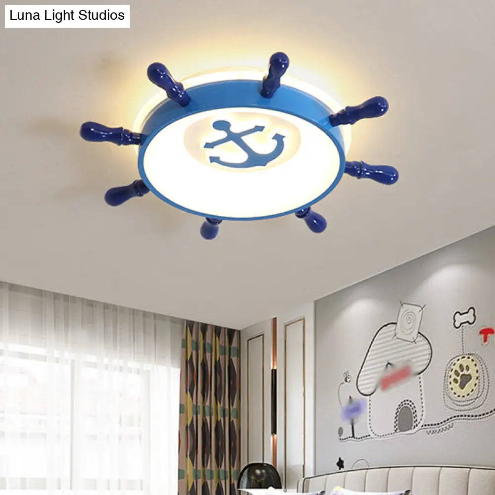 DecorBites™ Blue Rudder LED Ceiling Flush Light for Kids with Acrylic Shade and Anchor Pattern