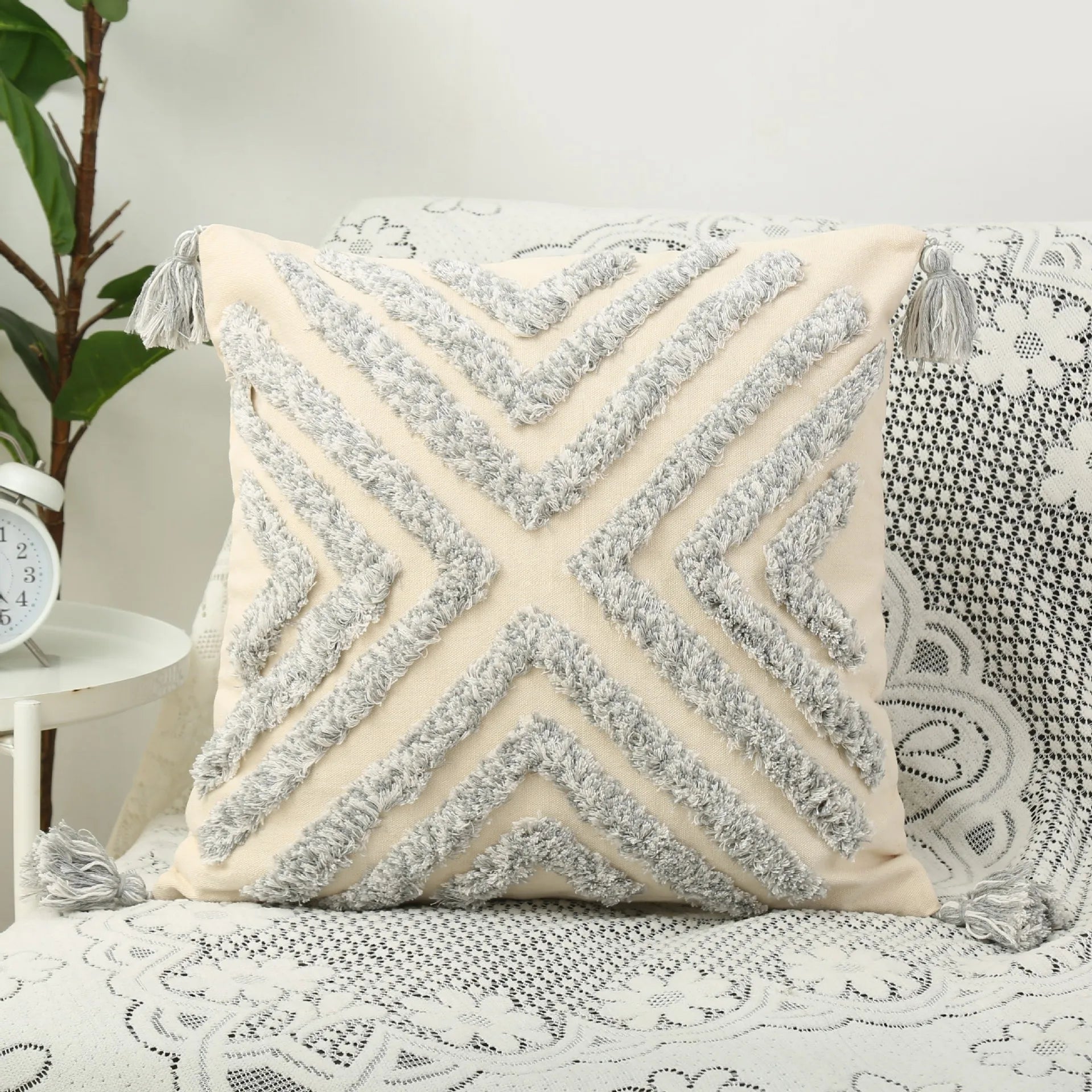 DecorBites™ Bohemian Chenille Pillowcase Geometric Pattern Tufted Tassel Sofa Cushions