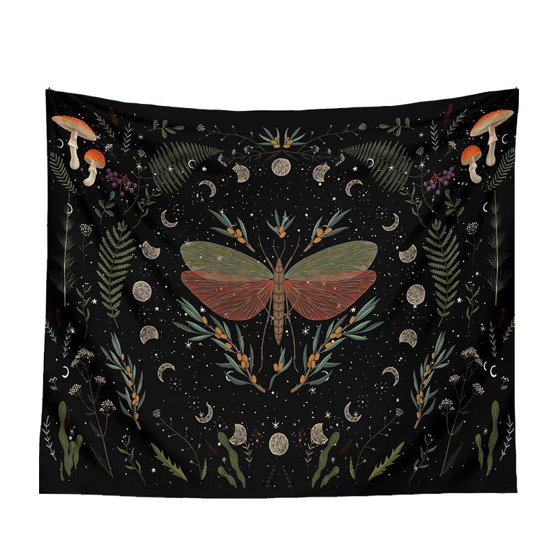Introducing our exquisite Decorbites Botanical Witchy Tapestry, a mesmerizing piece that will elevate the aesthetic of any room with its enchanting design featuring mushrooms and snakes. Crafted from 100% polyester, this tapestry is a perfect blend of quality and beauty.