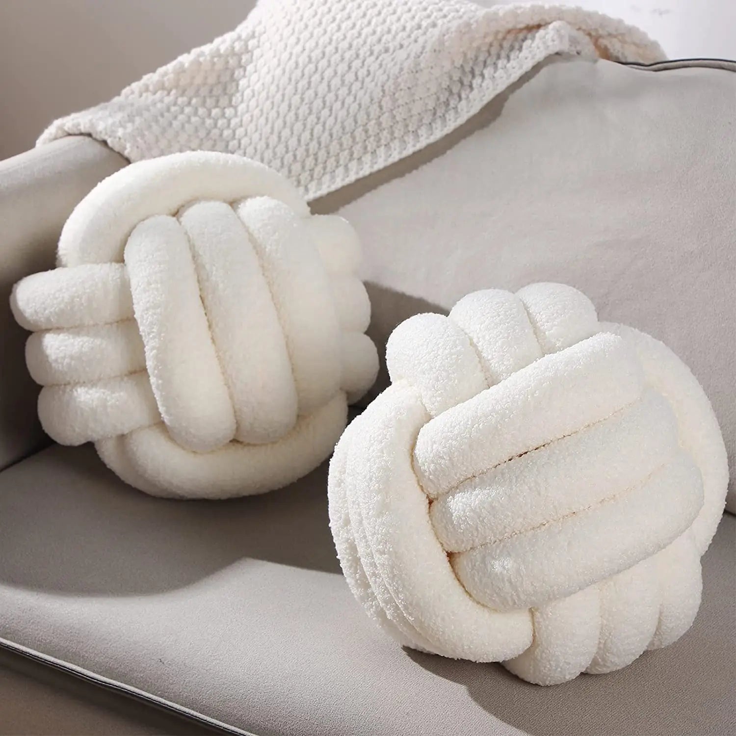 DecorBites™ Boucle Knotted Circle Soft Pillows - Home Decorative Round Ball Throw Plush Pillows