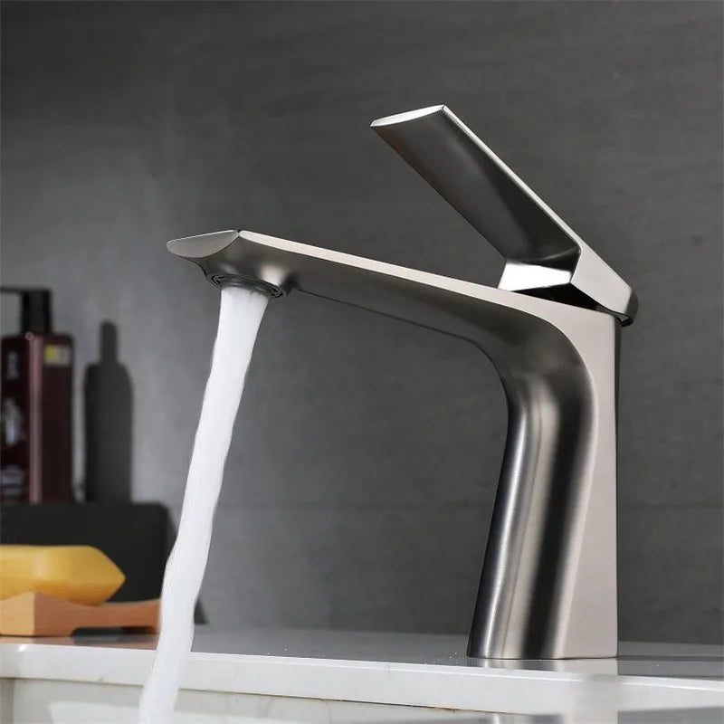 DecorBites™ Brushed Gold Bathroom Basin Faucet - Single Hole Water Mixer Crane
