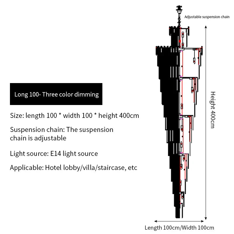 Illuminate your surroundings with the luminous glow emanating from this stunning chandelier. With a powerful yet energy-efficient DC power source, you can enjoy a luminous flux ranging from 2000 to 82000, ensuring a well-lit environment that is both dazzling and inviting.