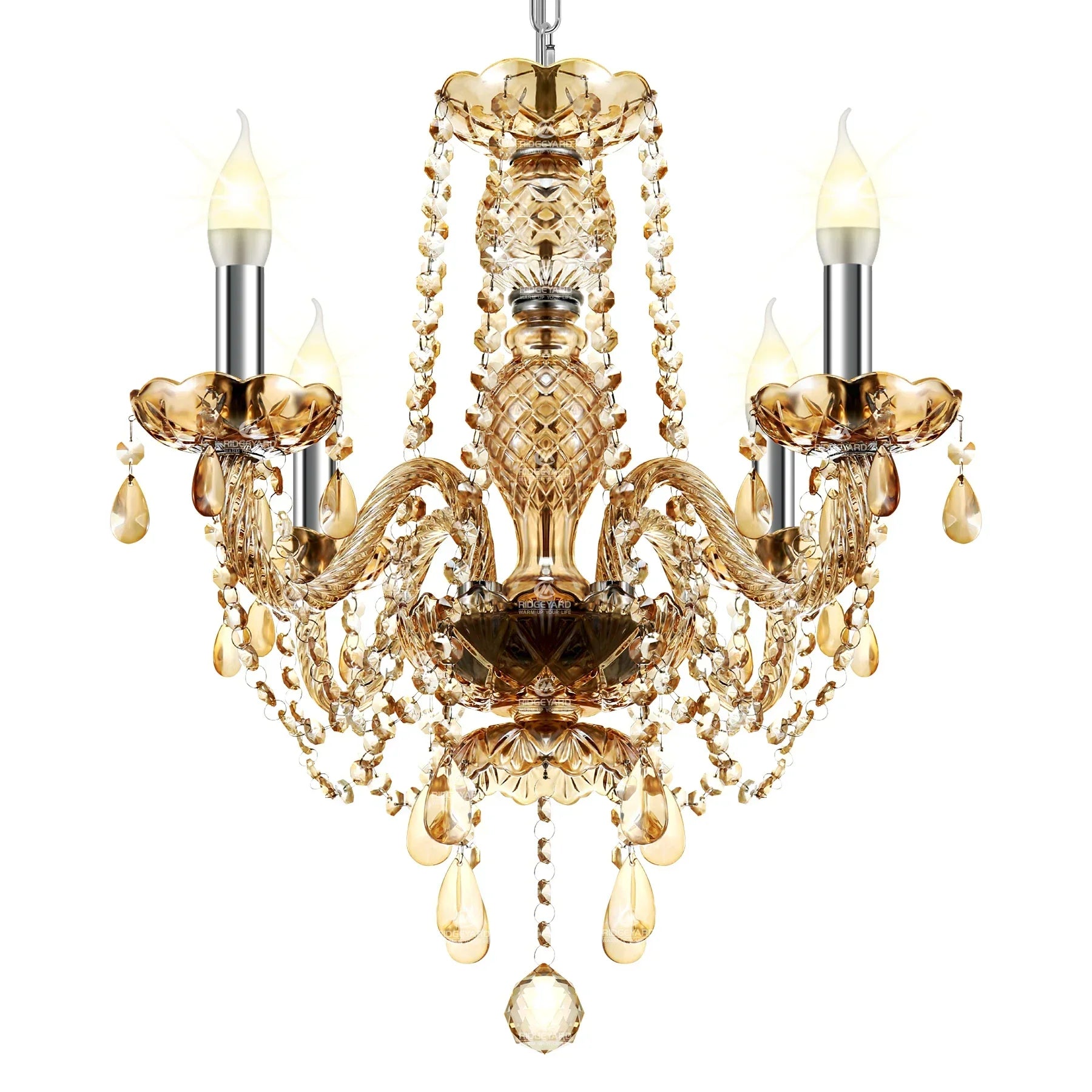 DecorBites™ Crystal Chandelier Pendant Light Cognac Gold LED Luxury Lamp for Dining Living Room