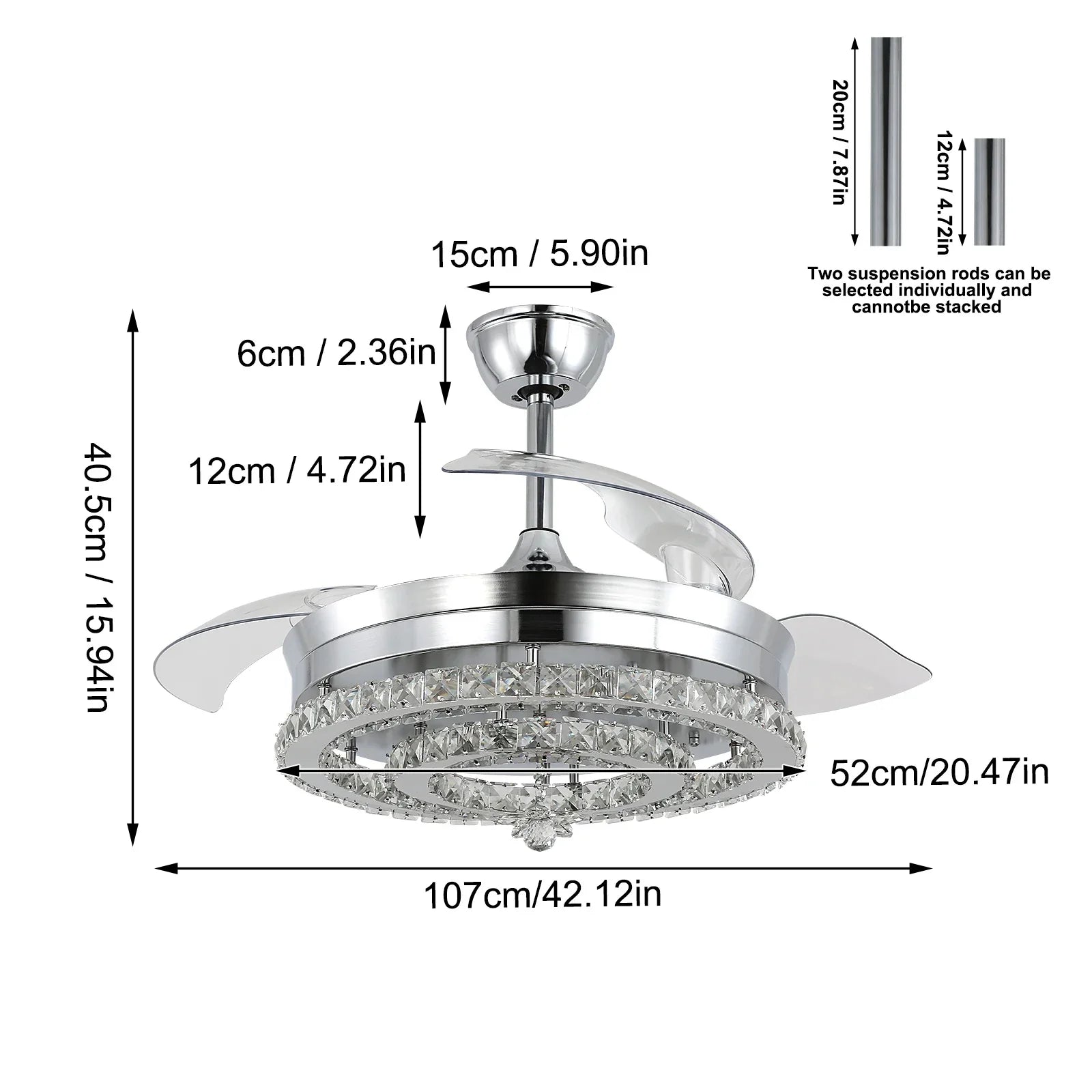 Introducing the Decorbites Crystal Fan Chandelier LED Light, a sleek and modern addition to your home decor. This stunning ceiling fan features retractable blades and a dimmable LED light, perfect for creating the ambiance you desire in any room.