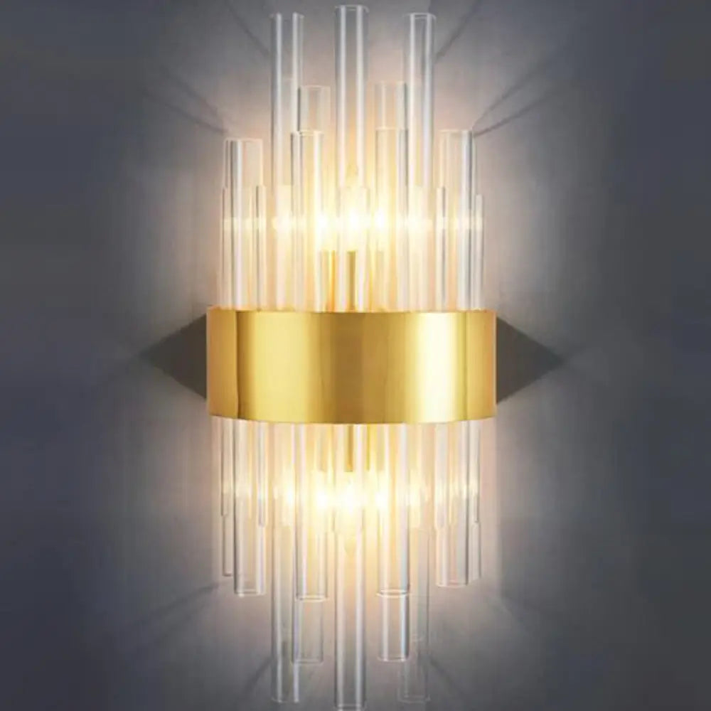 DecorBites™ Crystal Rod Wall Sconce in Gold - Elegant Dual Bulb Lighting for Living Room Walls