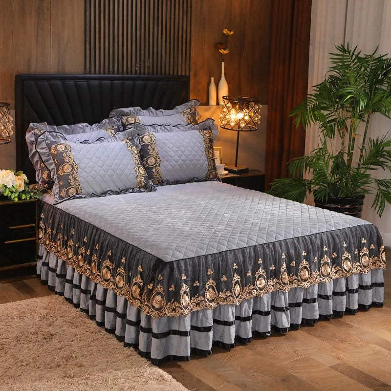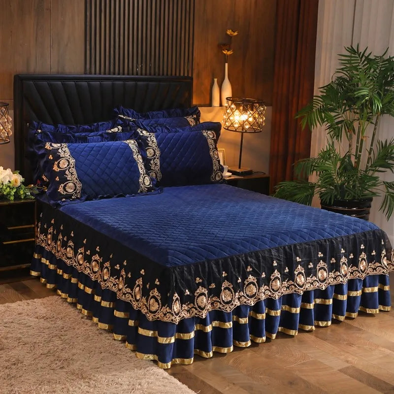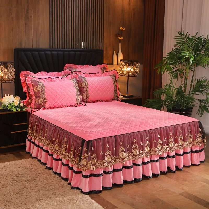 DecorBites™ Crystal Velvet Bedspread Set with Super Soft Quilting & Lace Bedskirt