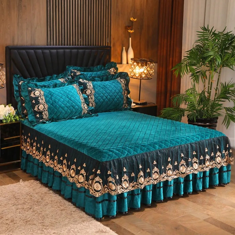 Introducing the Decorbites Crystal Velvet Bedspread Set with Super Soft Quilting & Lace Bedskirt. Elevate the comfort and style of your home with this luxurious bedspread set.