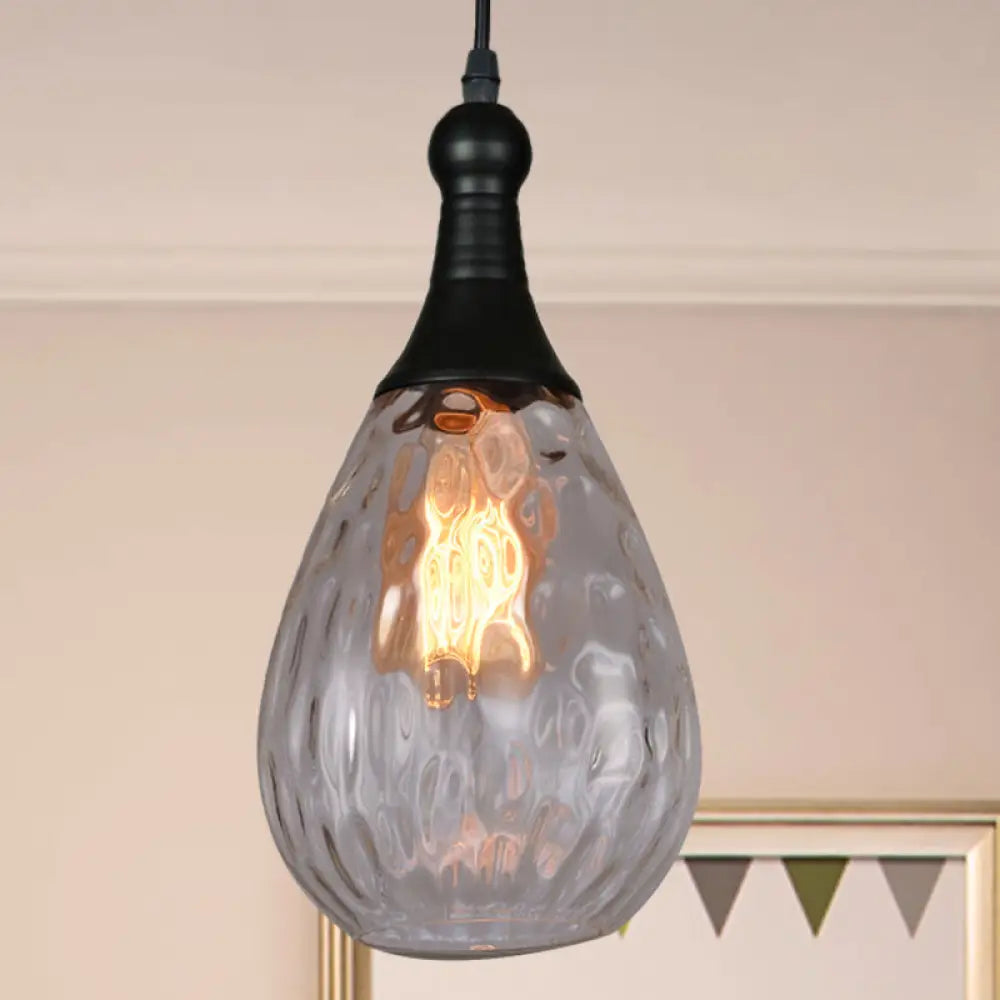 DecorBites™ Daisy - Industrial Black/Brass Teardrop Ceiling Light Industrial Clear/Amber/Grey Water Glass 1-Light Bedroom Pendant Lighting Fixture