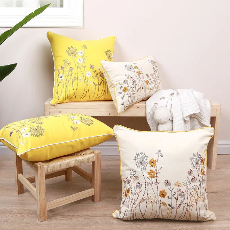 DecorBites™ Dandelion Floral Yellow Pillow Cover for Home Decor