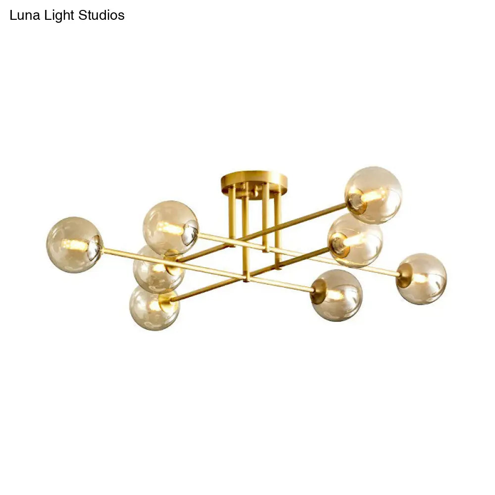 DecorBites™ DecorBites™ Amber Glass Semi-Flush Ceiling Pendant in Gold - Postmodern Spherical Dining Room Lighting