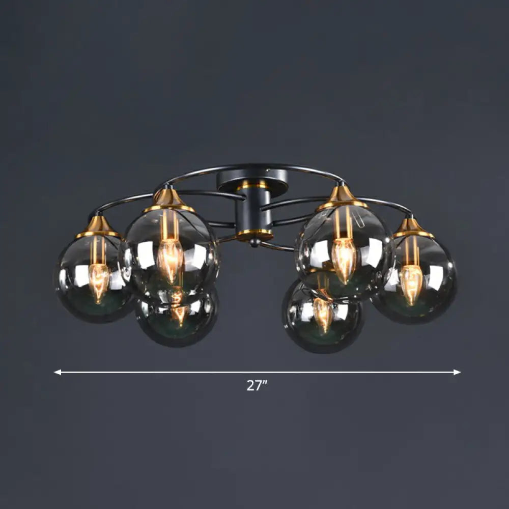 DecorBites™ DecorBites™ Black and Brass Postmodern Semi-Flush Chandelier with Glass Ball Shade for Ceiling Lighting