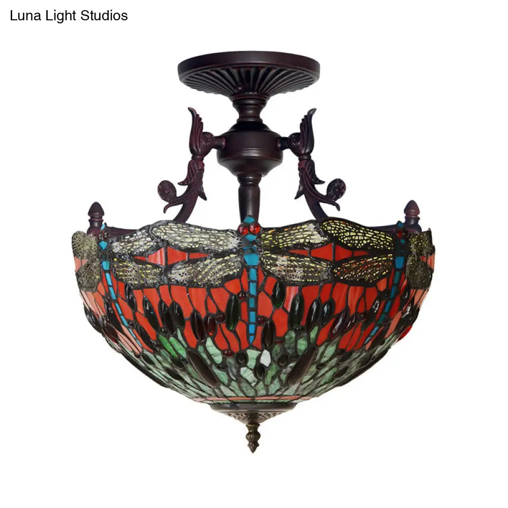 DecorBites™ DecorBites™ Bronze 3-Light Semi Flush Ceiling Light with Mediterranean Beige/Red/Yellow Glass Shade for Living Room