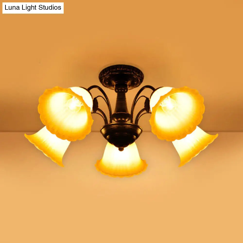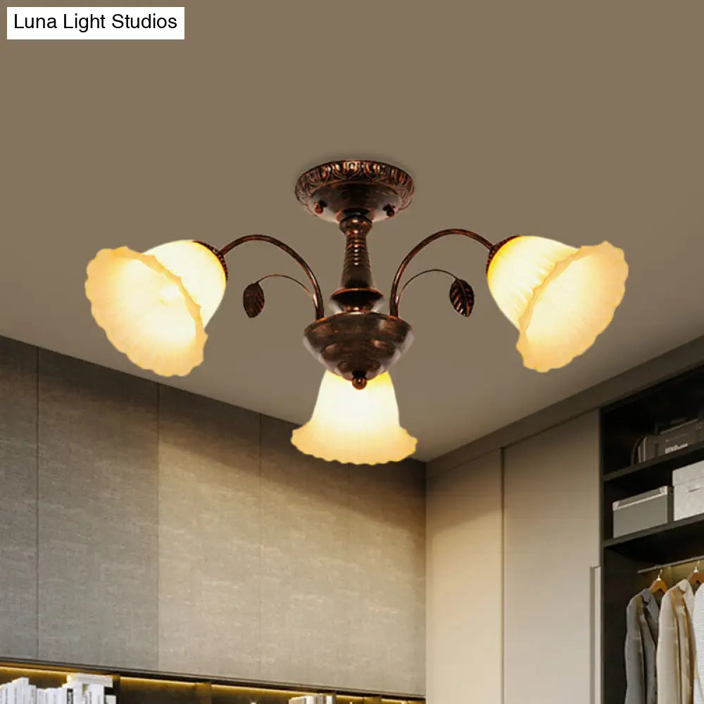 DecorBites™ DecorBites™ Bronze Countryside Blossom Ceiling Mount Light Fixture with Frosted Glass for Bedroom - 3/5 Lights Semi Flush