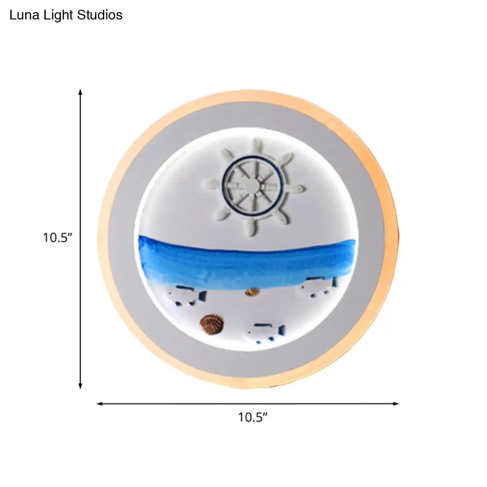 DecorBites™ DecorBites™ Coastal Scenery LED Round Wall Lamp: White Acrylic Decor for Bedroom