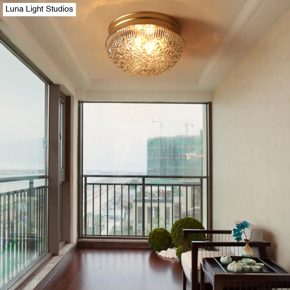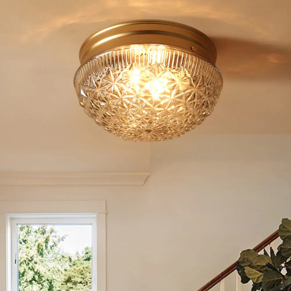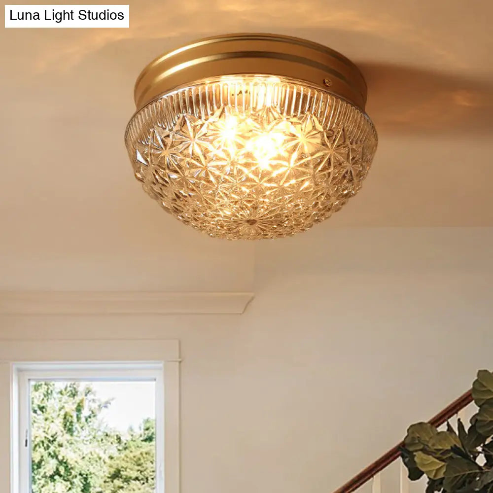 DecorBites™ DecorBites™ Colonial Gold Flush Mount Ceiling Light Fixture with Clear Ribbed Glass for Bedroom - Set of 2 Bulbs