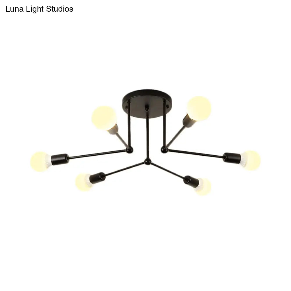 DecorBites™ DecorBites™ Contemporary Black Metal Semi Flush Ceiling Light with 6 Radial Heads
