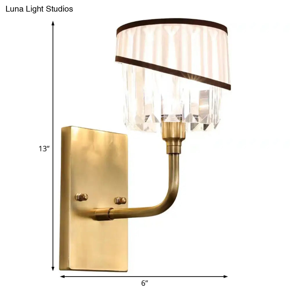 DecorBites™ DecorBites™ Contemporary Brass Cylinder Sconce with Crystal and Curved Arm Wall Mount Light