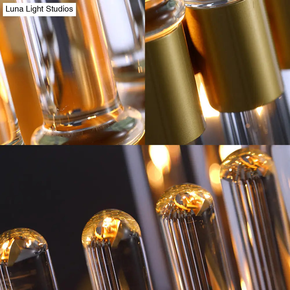 This modern wall lamp will provide your room with superior style and quality lighting. Whether in the living room, hallway, or dining room, the Contemporary Brass Wall Mount Fixture with Pipe Crystal Shade will provide a warm and inviting atmosphere. This stunning sconce will bring a modern flair to your home with its brass, crystal, and metal material. With the added convenience of a direct wired electric power source, and the ability to use any lightning type, this wall light is sure to be the perfect addition to your living space.