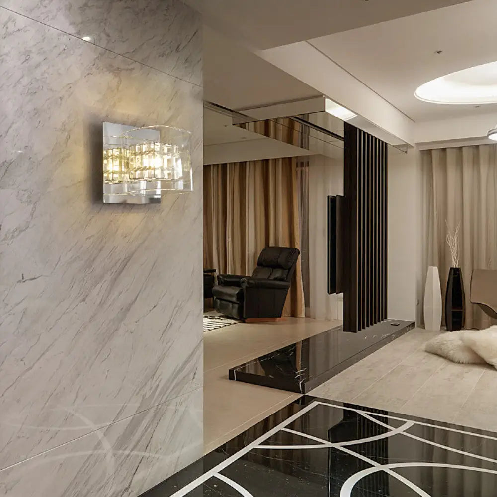 DecorBites™ DecorBites™ Contemporary Clear Glass Wall Sconce with Chrome Inner Wire Shade - Ideal for Corridors - 1 Light Wall Lamp