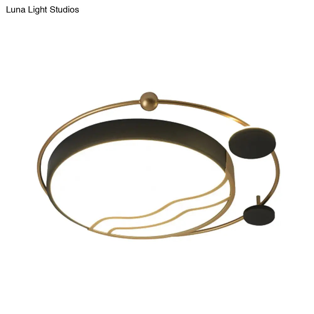 DecorBites™ DecorBites™ Contemporary Round Flush Mount Iron LED Flushmount with Halo Detail - White/Warm Light
