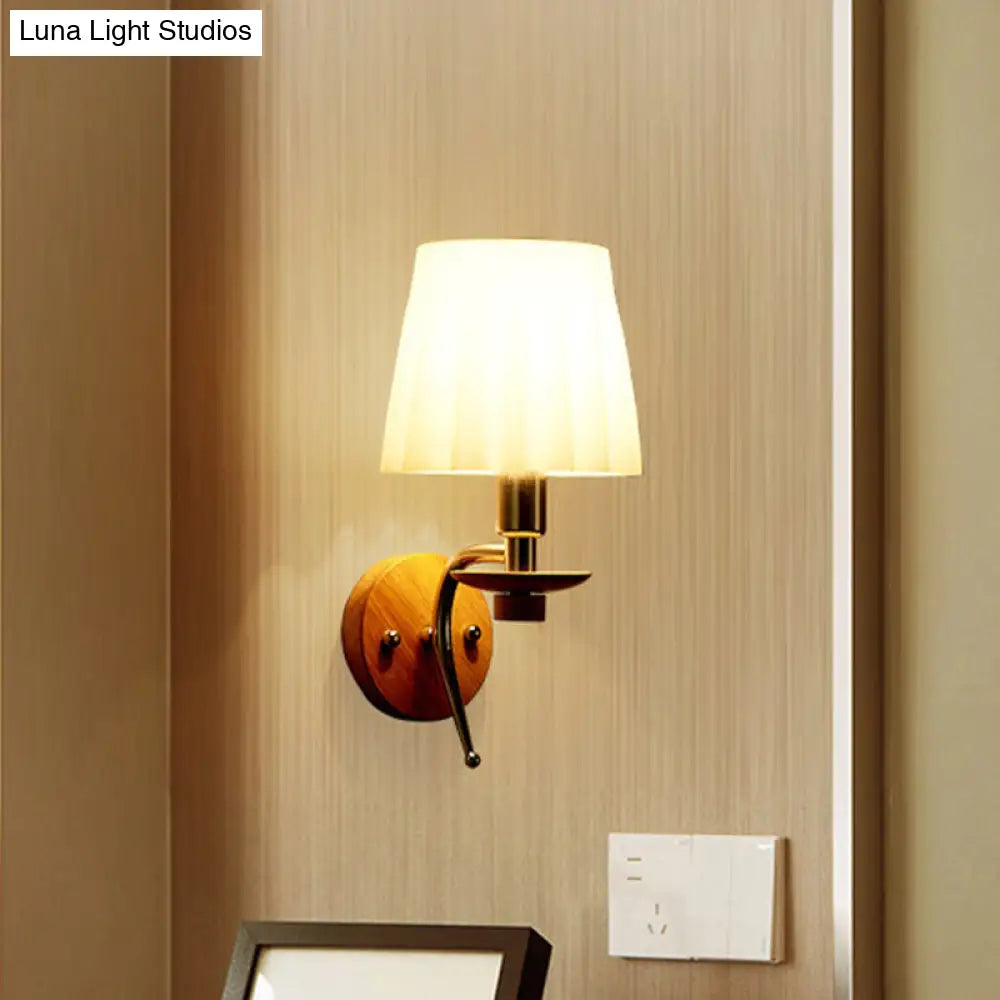 DecorBites™ DecorBites™ Contemporary White/Beige Fabric Wall Sconce for Corridor - Tapered Wall Mount Fixture with 1 Bulb
