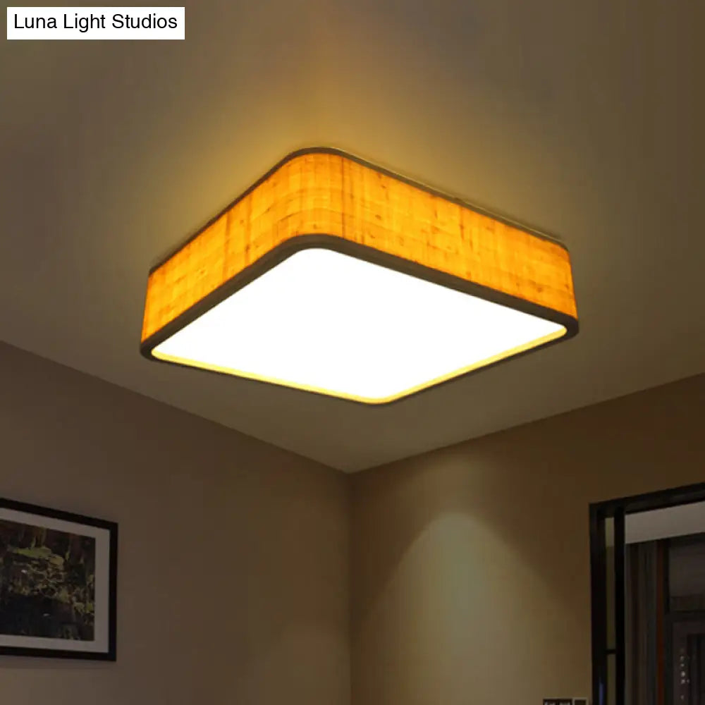 DecorBites™ DecorBites™ Contemporary Wood LED Flush Mount Ceiling Light Fixture - Bamboo Square Design