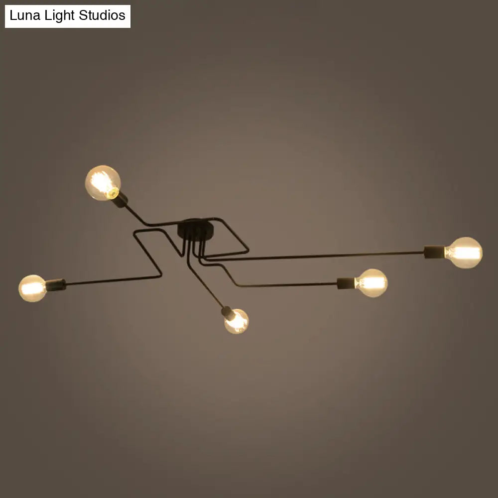 DecorBites™ DecorBites™ Country Style Ceiling Mounted Lamp: 5-Light Semi Flush Mount in Black, Exposed Bulb Design
