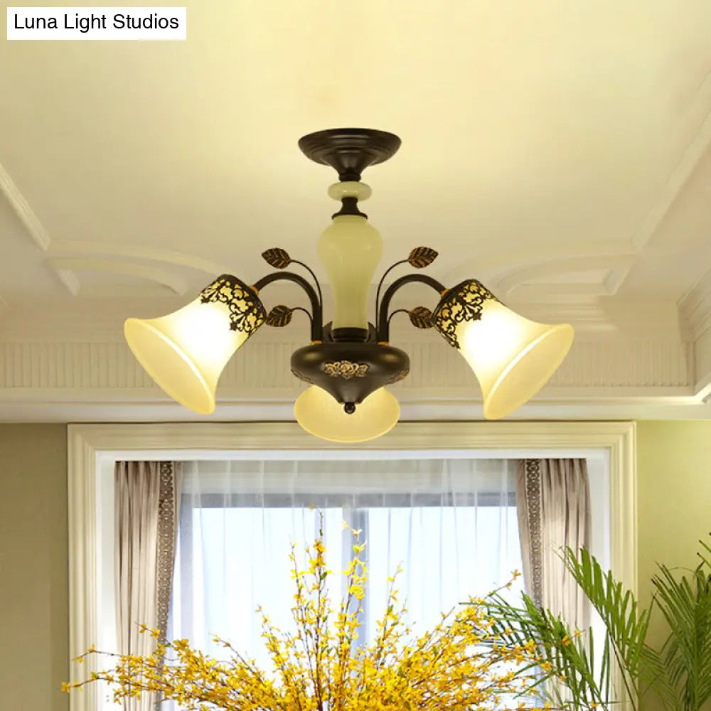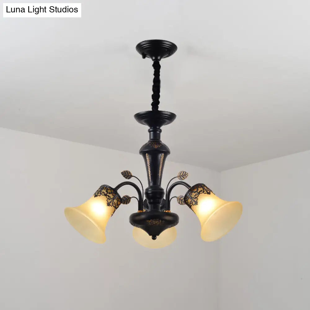 DecorBites™ DecorBites™ Frosted Glass Morning Glory Chandelier - Farmhouse Ceiling Pendant (3/6/8 Lights) in Black/White for Living Room