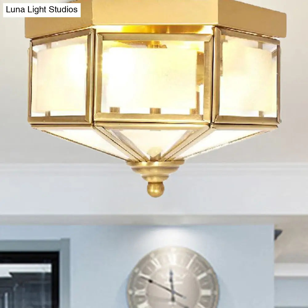 DecorBites™ DecorBites™ Geometric Flush Light Fixture with Frosted Glass in Brass - Ideal for Balcony or Ceiling Mounting