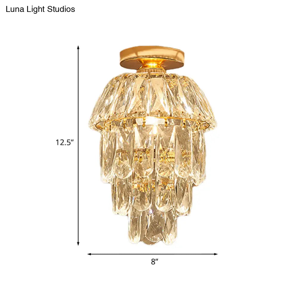 DecorBites™ DecorBites™ Gold Cylinder Pinecone Foyer Ceiling Lamp - Simple Crystal Design with Semi-Flush Mount - 1 Bulb Light Fixture