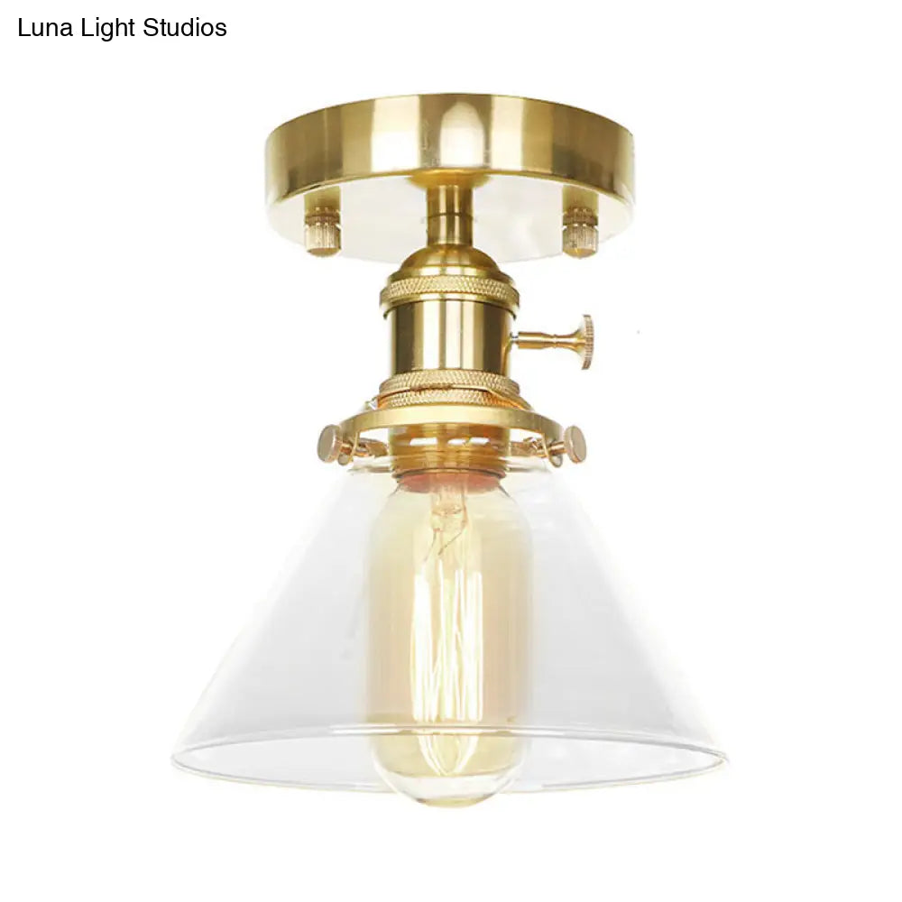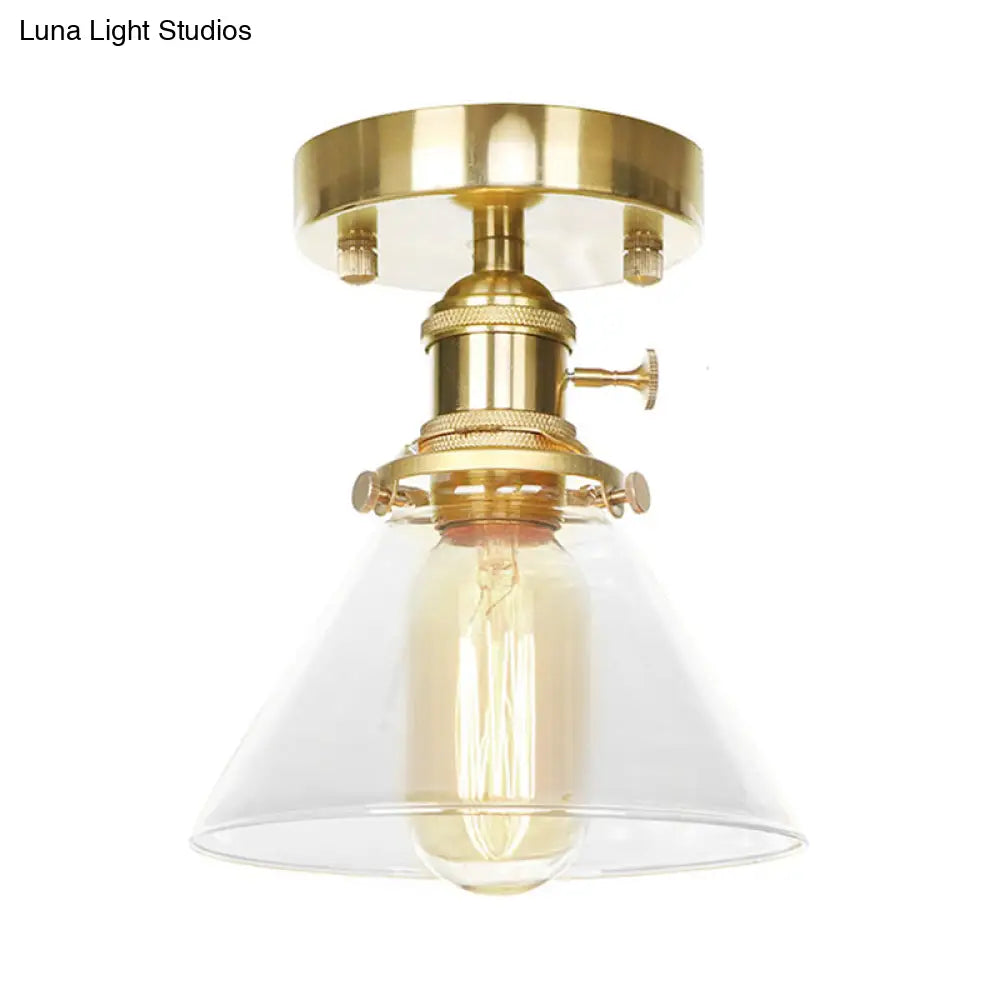 DecorBites™ DecorBites™ Industrial Brass Semi-Flush Light with Clear/Amber Glass for Living Room - One Light Cone Fixture
