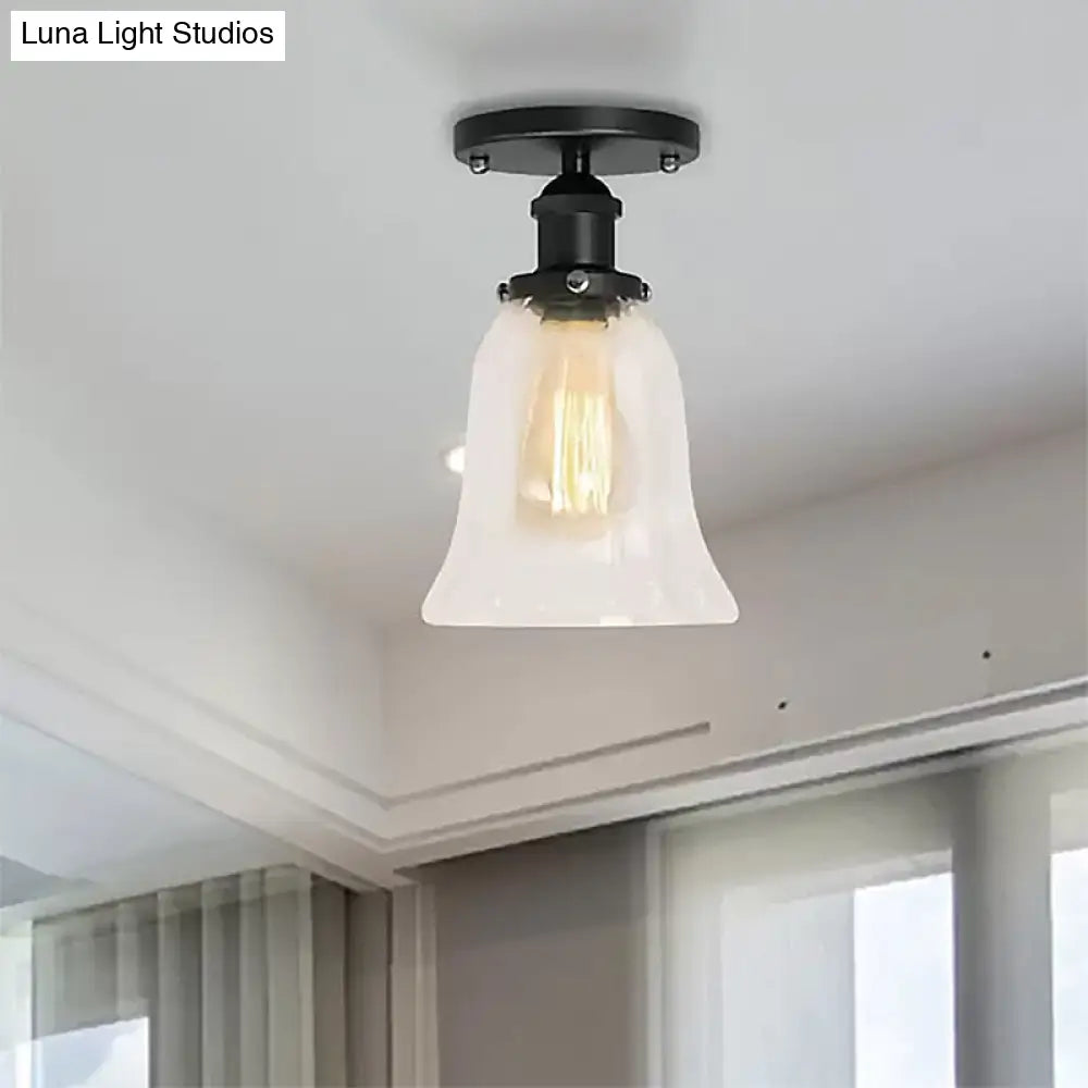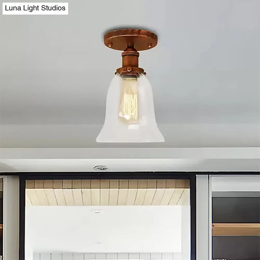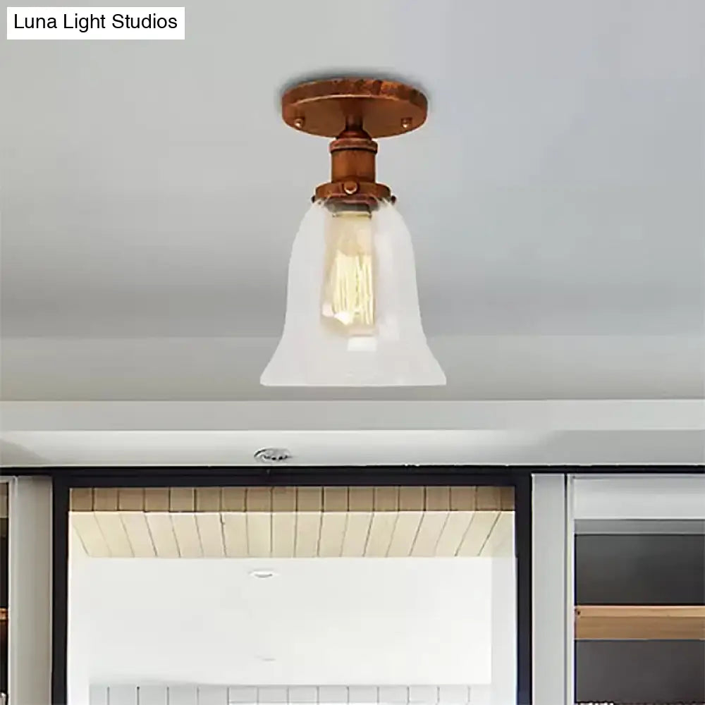 DecorBites™ DecorBites™ Industrial Flared Glass Semi Flush Mount Light with Clear Bulb in Black/Bronze/Copper