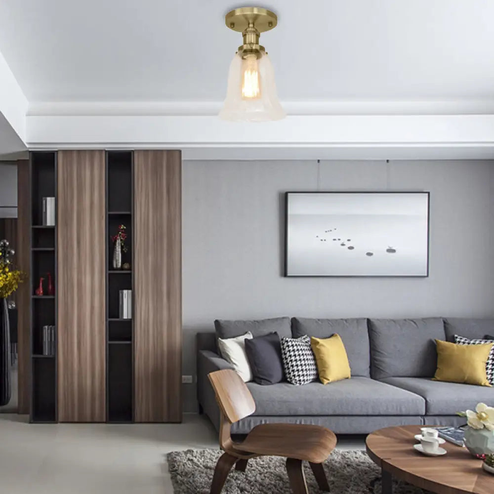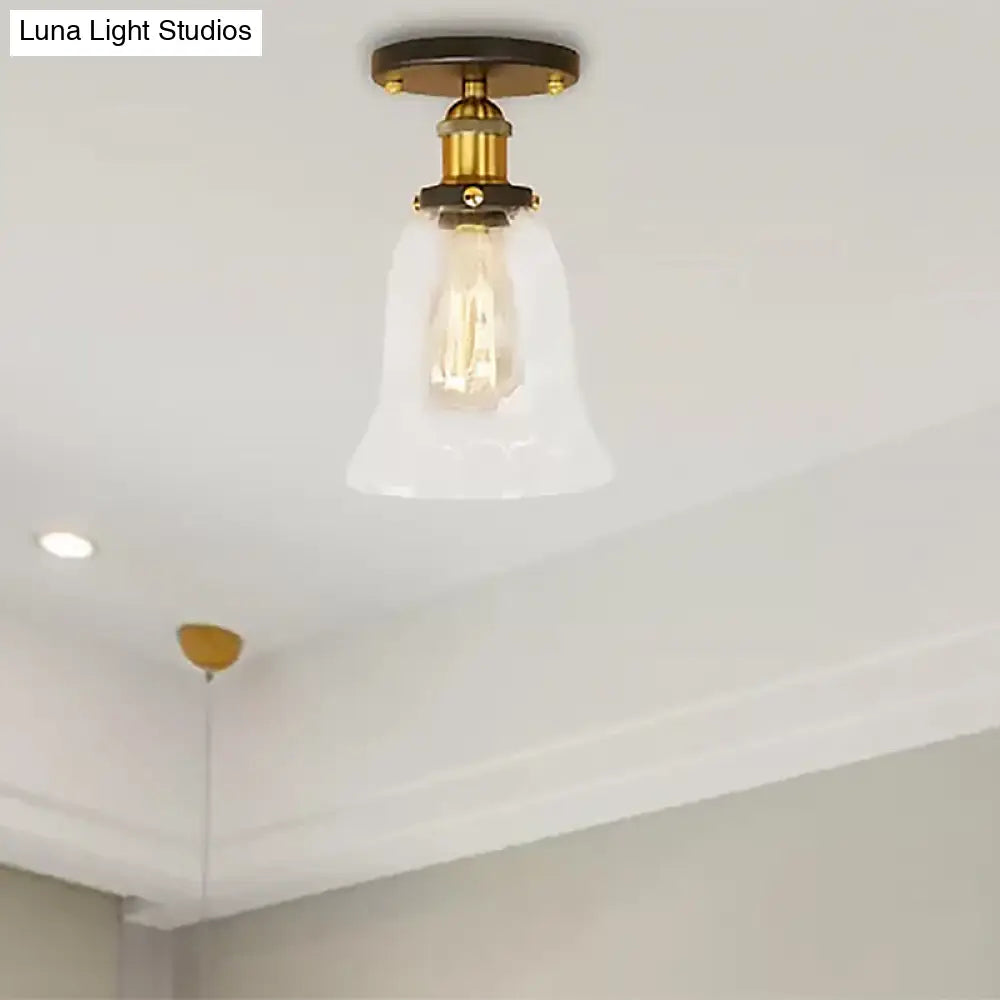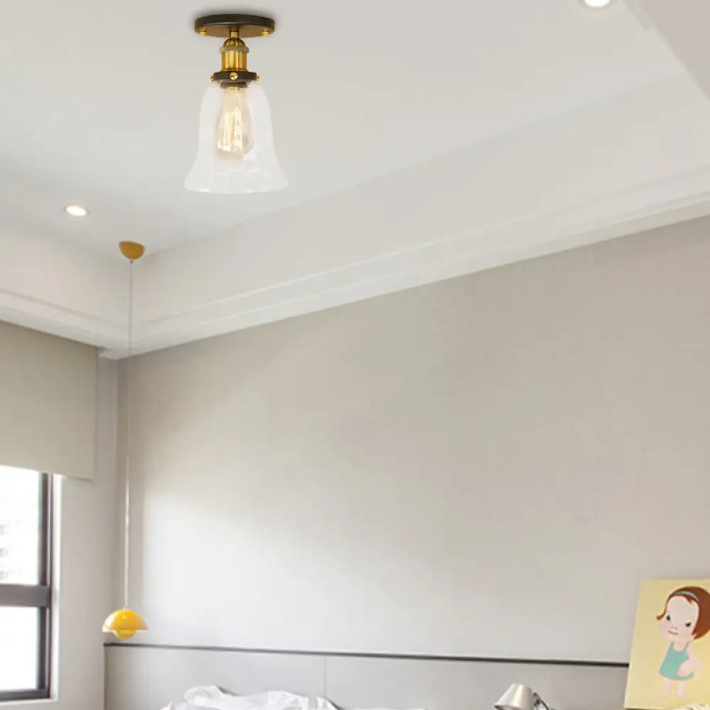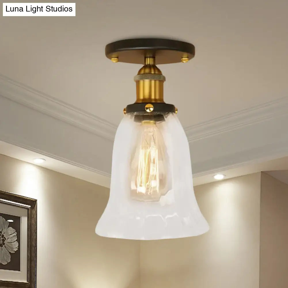 DecorBites™ DecorBites™ Industrial Flared Glass Semi Flush Mount Light with Clear Bulb in Black/Bronze/Copper