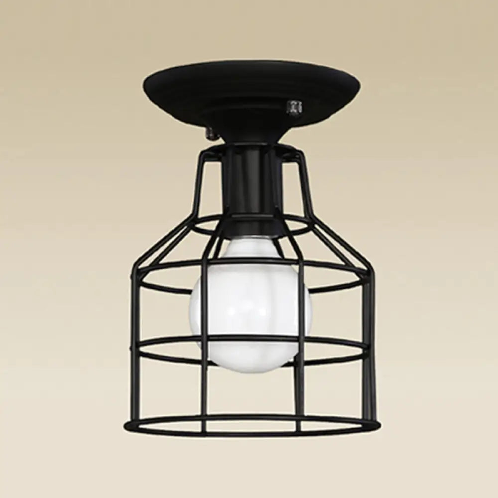 DecorBites™ DecorBites™ Industrial Metal Cage Flush Mount Ceiling Light in Black - Perfect for Living Rooms