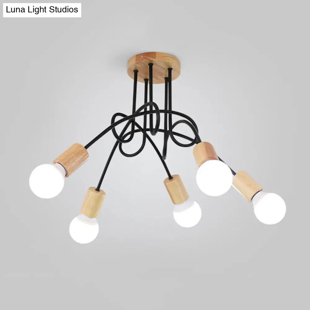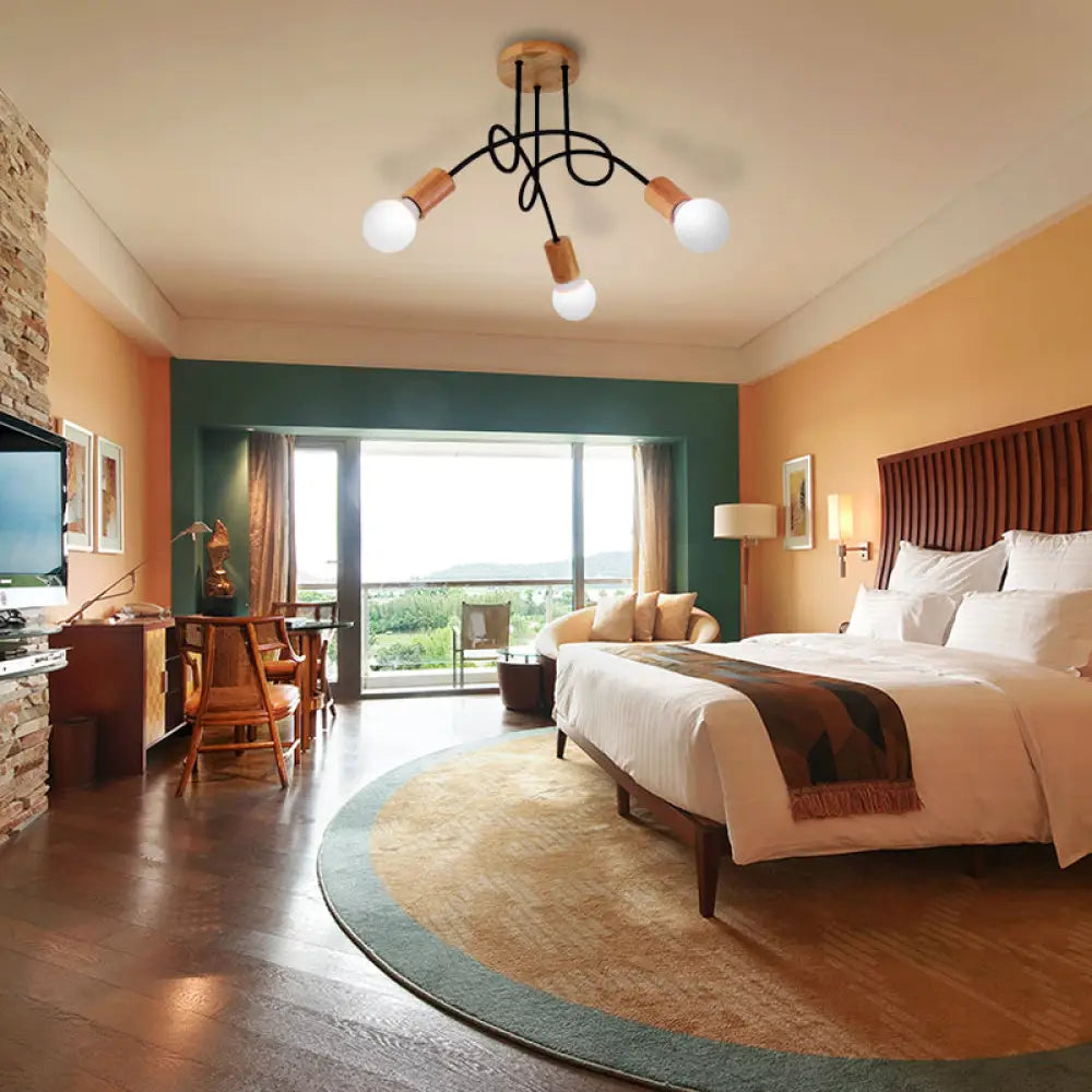 Moreover, the light can support LED, incandescent or fluorescent lights with a E26/E27 bulb base; the number of lights are 5 and 3 for 25" and up and 20" to 24" respectively. No bulbs are included, so you can choose the specific bulb shapes or wattages to your taste. This Twisted Semi Flush Mount Light Modern Wood Bare Bulb Ceiling Lights for Bedroom is definitely designed for maximum functionality and convenience when it comes to brightening up your home. The industrial style design is sure to complement any home décor.