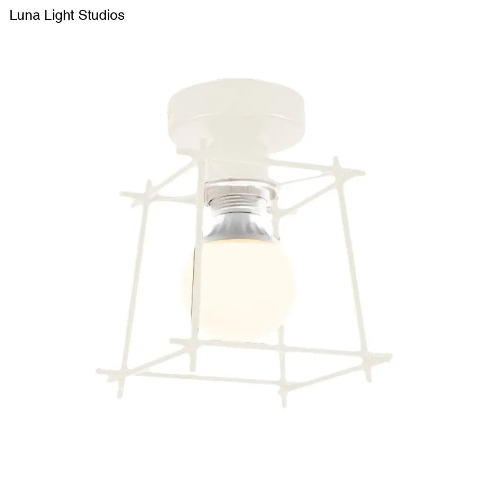 DecorBites™ DecorBites™ Industrial Metal Semi-Flush Ceiling Light with Wire Guard - Rotatable 1 Head Bedroom Flush Mount Lighting in Black/White