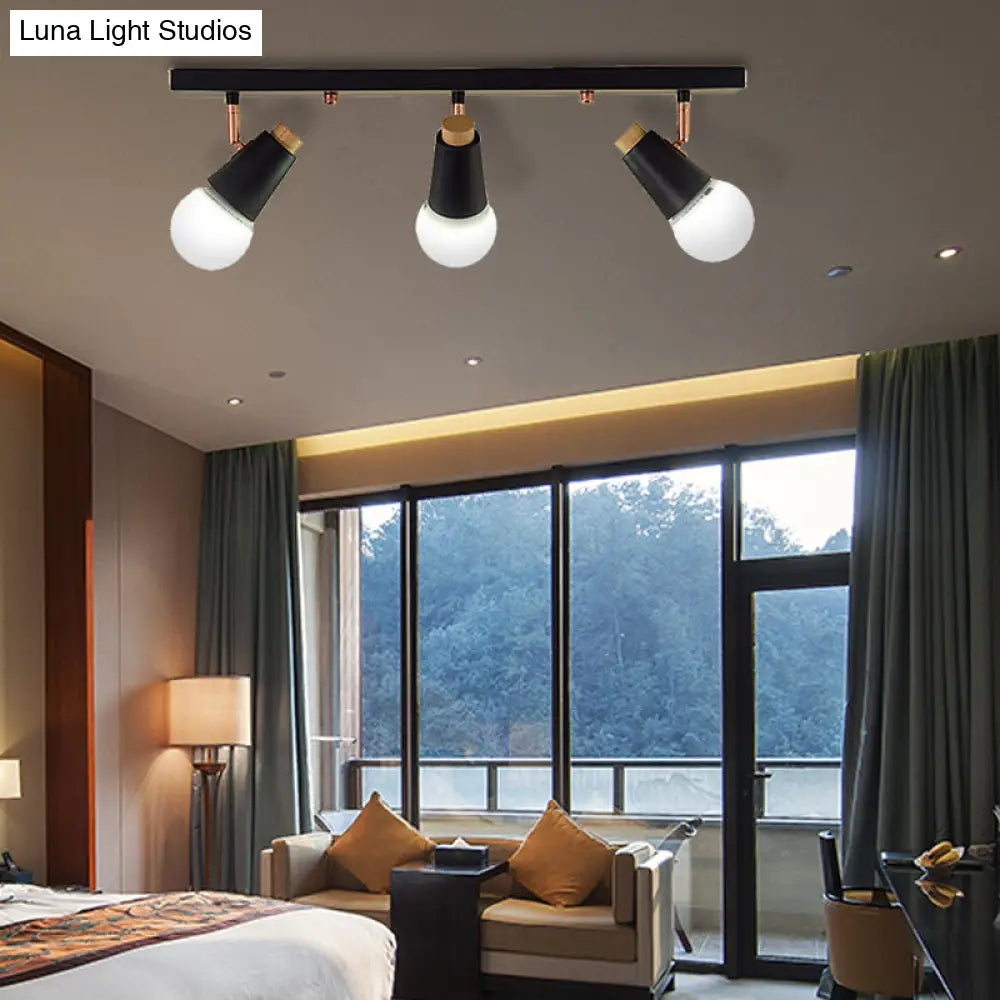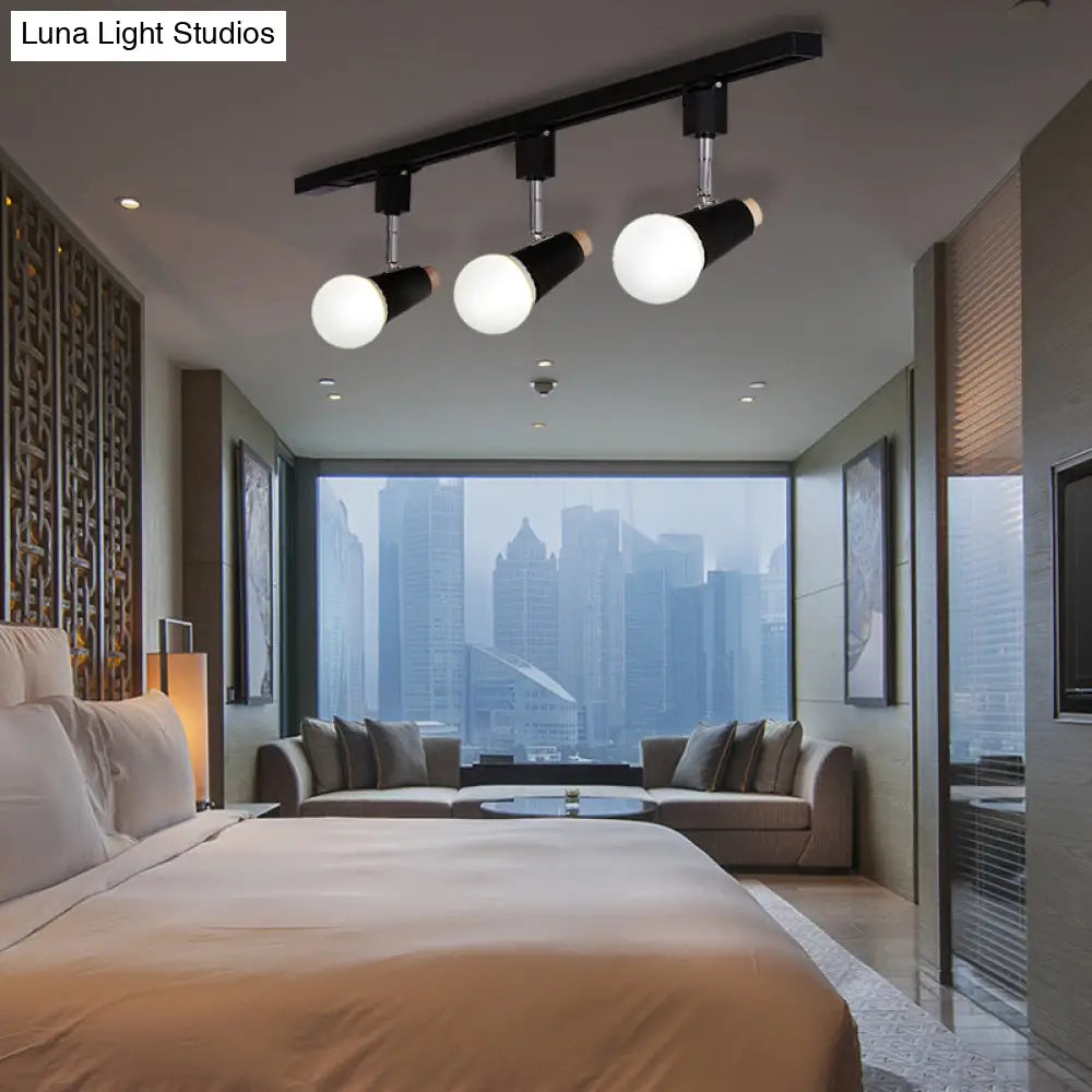 DecorBites™ DecorBites™ Industrial Metallic Linear Ceiling Light - 3/4 Heads Adjustable Semi Flush Track Fixture with Cup Shade in Black/White